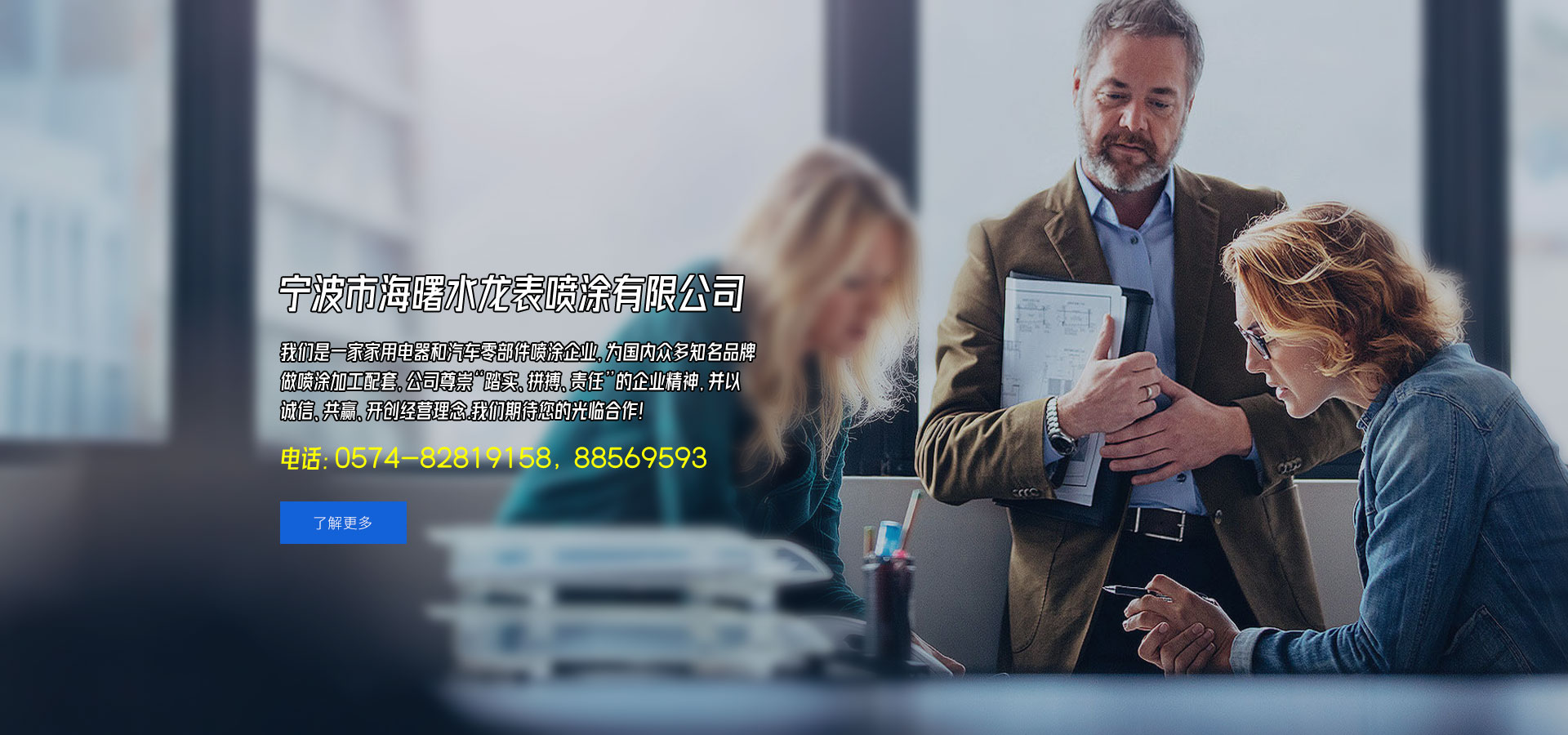 宁波市海曙水龙表喷涂有限公司,是一家国内的家用电器和汽车零部件注塑喷涂企业,为国内众多知名品牌做喷涂加工配套,公司尊崇“踏实、拼搏、责任”的企业精神,并以诚信、共赢、开创经营理念,创造良好的企业环境,以全新的管理模式,完善的技术,周到的服务,良好的品质为生存根本,我们始终坚持用户至上、用心服务于客户,坚持用自己的服务去打动客户。